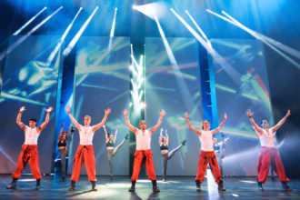 ToiBoys-poikabändin näyttelijät Jari Ahola, Jon-Jon Geitel, Lauri Mikkola, Saska Pulkkinen ja Jonas Saari pitävät kiitettävästi showta yllä ysärihengessä.
