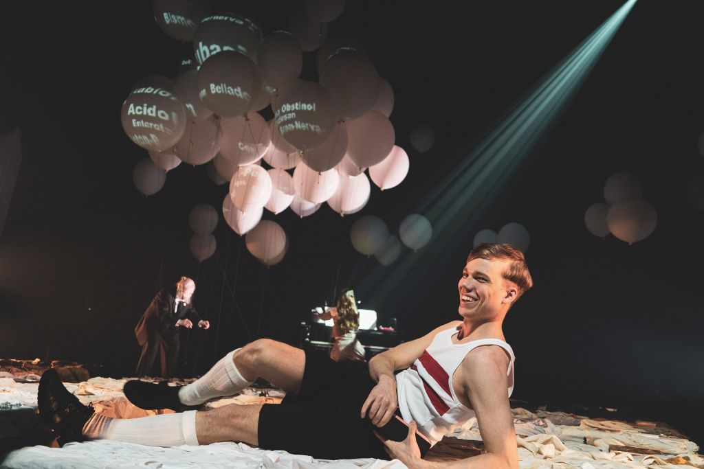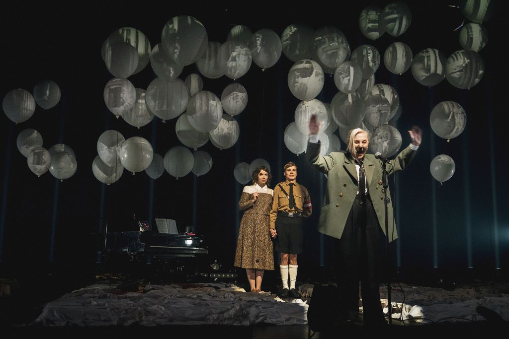 Tarja Simonen käsistä syntynyt lavastus ja eritoten valkoiset ilmapallot ovat oivaltava tarinan kuvituspohja. Niissä Hitlerin innovoimat ja valtakunnan ykkösarkkitehdin Albert Speerin loihtimat suurisuuntaiset Welthauptstadt Germania -Berliini-suunnitelmat kimmeltävät ja puhkeavat. Samoin propagandaministeri Joseph Goebbelsin Hitlerille lahjoittamat Mikki Hiiri -elokuvat ovat mitä parhaimmilla kankaillaan ilmapalloissa, kun seurue viettää leppoisia hetkiä Obersalzbergillä.
