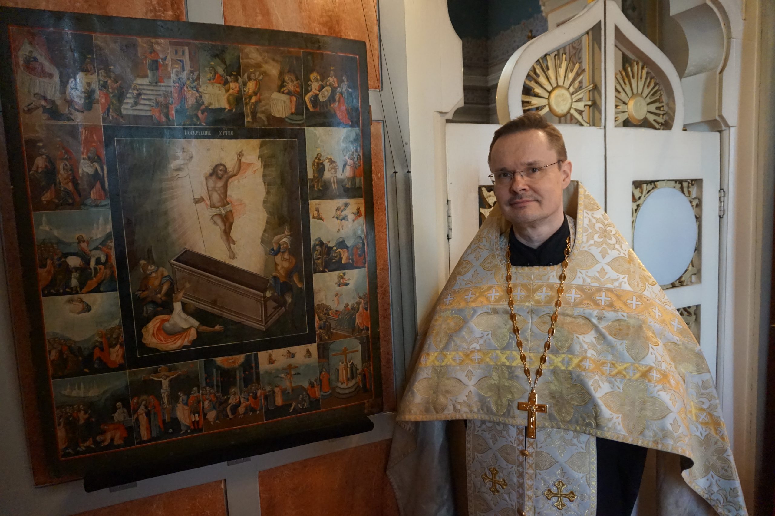 – Muistan jo lapsuudestani saakka, miten kymmenet kaupunkilaiset, ei-ortodoksit kerääntyvät kirkkomme läheisyyteen seuraamaan pääsiäisyön ristisaattoa. Iloinen kellojen soitto ja veisaava kirkkokansa papistoineen, lyhdyn-, ristin-, kirkkolippujen ja ikonien kantajineen konkretisoi ihmisille Kristuksen ylösnousemisen ilosanoman, hän toteaa.