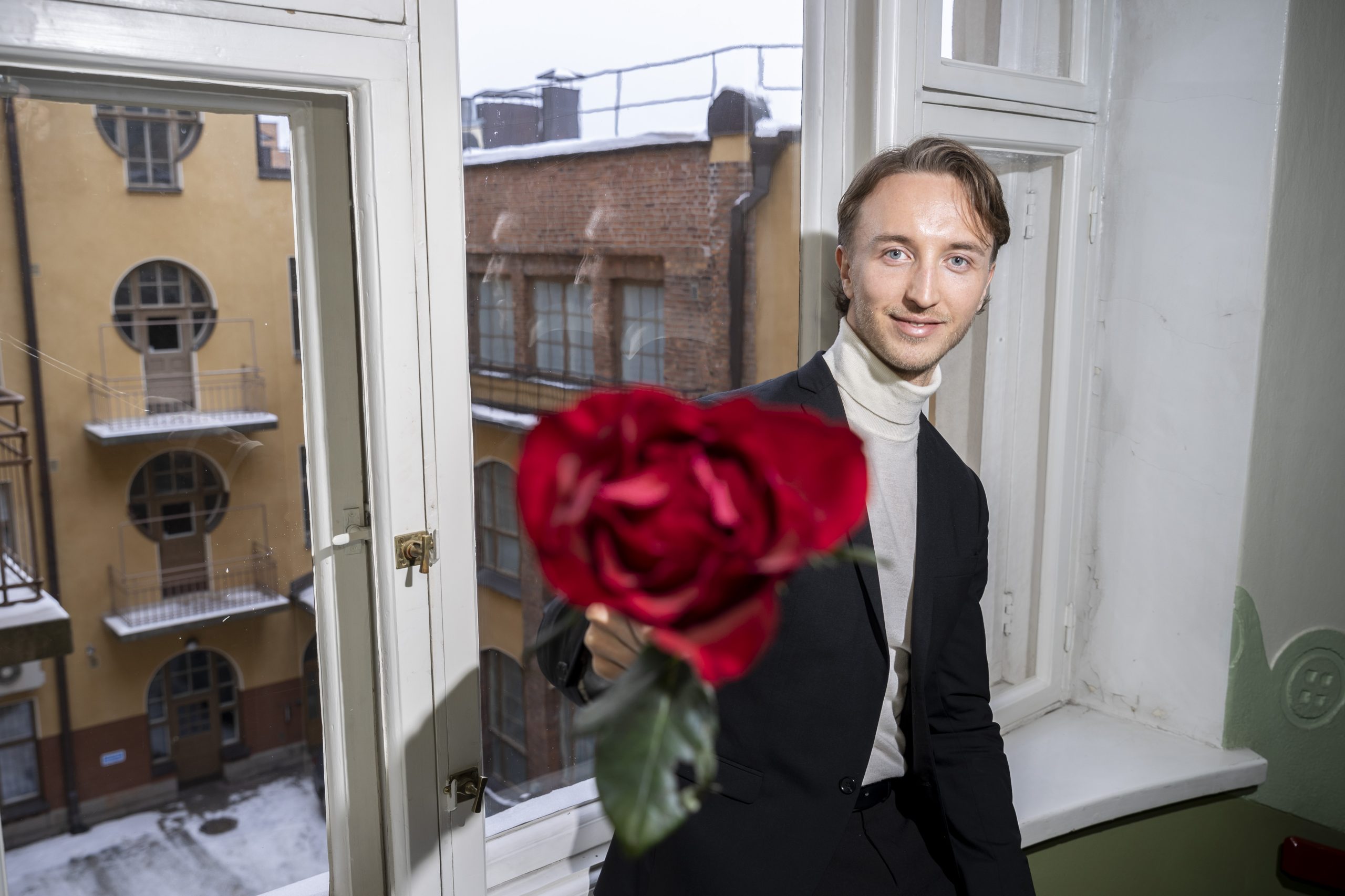 Kannattaja on tuonut Nurmiselle taidokkaasti sidotun kukkakimpun, jonka hehkuvan punaiset ja samettimaisen pehmeäpintaiset ruusut hehkuvat kiitollisuutta. Nurminen korostaa aktiivisen ja elävän yhteyden säilyttämisen merkittävyyttä ihmisiin.