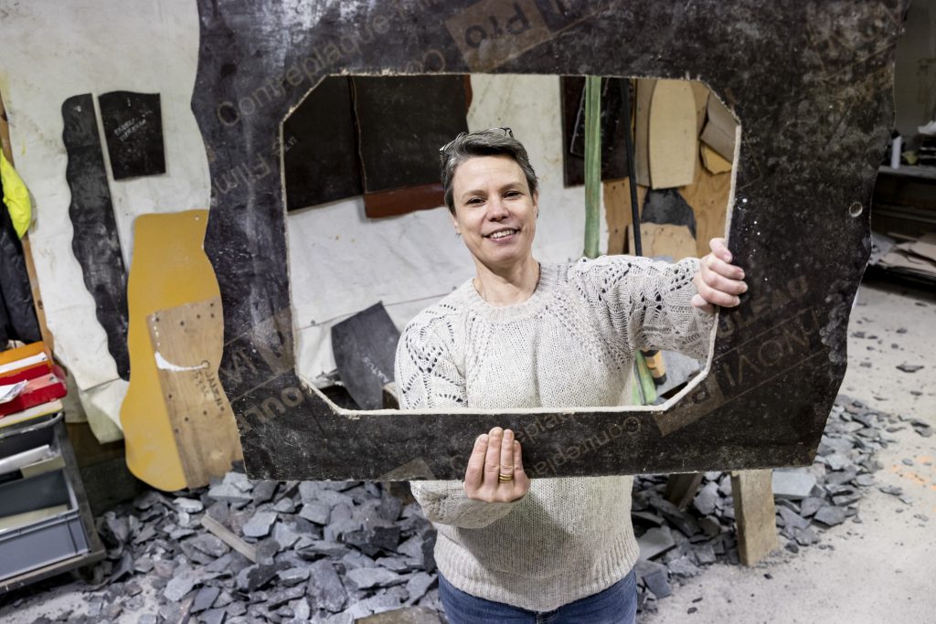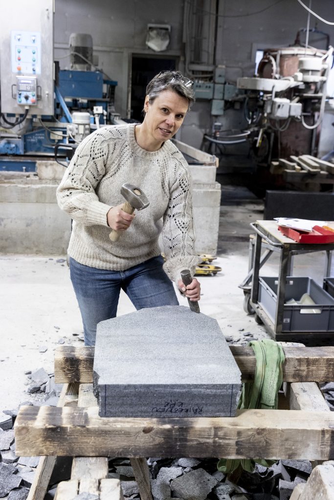 Näemme hautausmaillamme hautakivistä kerroksittain kansakuntamme historiaa. Kotimaiset kivilajit kestävät Suomessa vallitsevat olosuhteet. Kiven työstäminen on taitolaji, joka taidetaan runsaan 60 vuoden kokemuksella Kiviliike Sairanen Oy.ssä. Kaisa Ollila sanoo, että käytössä ovat niin perinteiset työkalut kuin alan uusinta teknologiaa edustavat koneet. (Kuva: Rami Marjamäki)