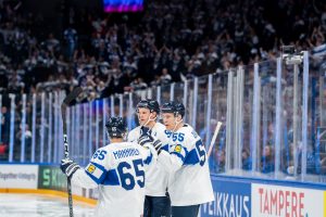 Tapparan Waltteri Merelä avasi maalitilinsä kolmannessa erässä, kun hän lisäsi Suomen johdon lukemiin 1–6.