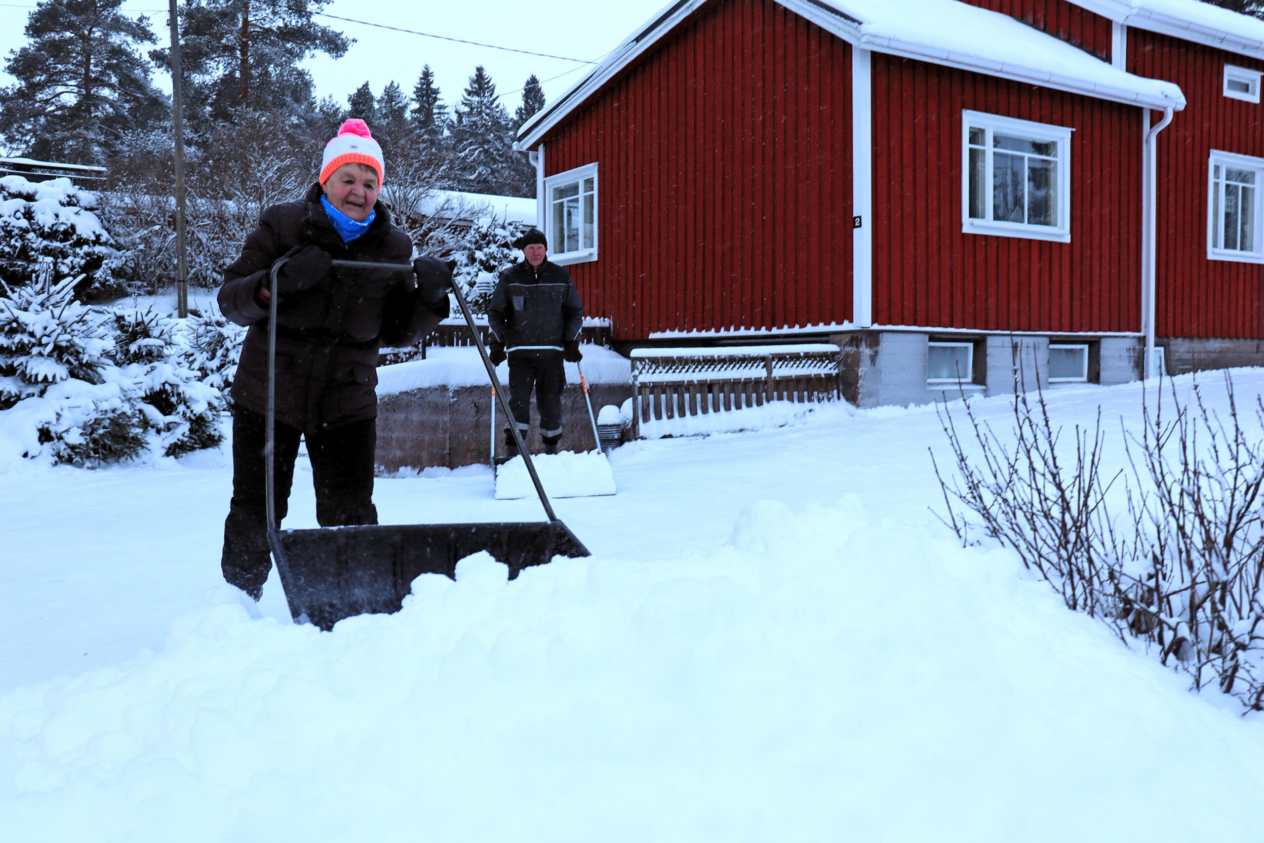 MARJA-LIISA ja Esko Majamaa ovat hankkineet kummallekin sopivat työkalut. Esko tarvitsee pidemmän varren kolaansa ja Marja-Liisan kolan kuuppa on hieman pienempi ja siten kevyempi työntää.