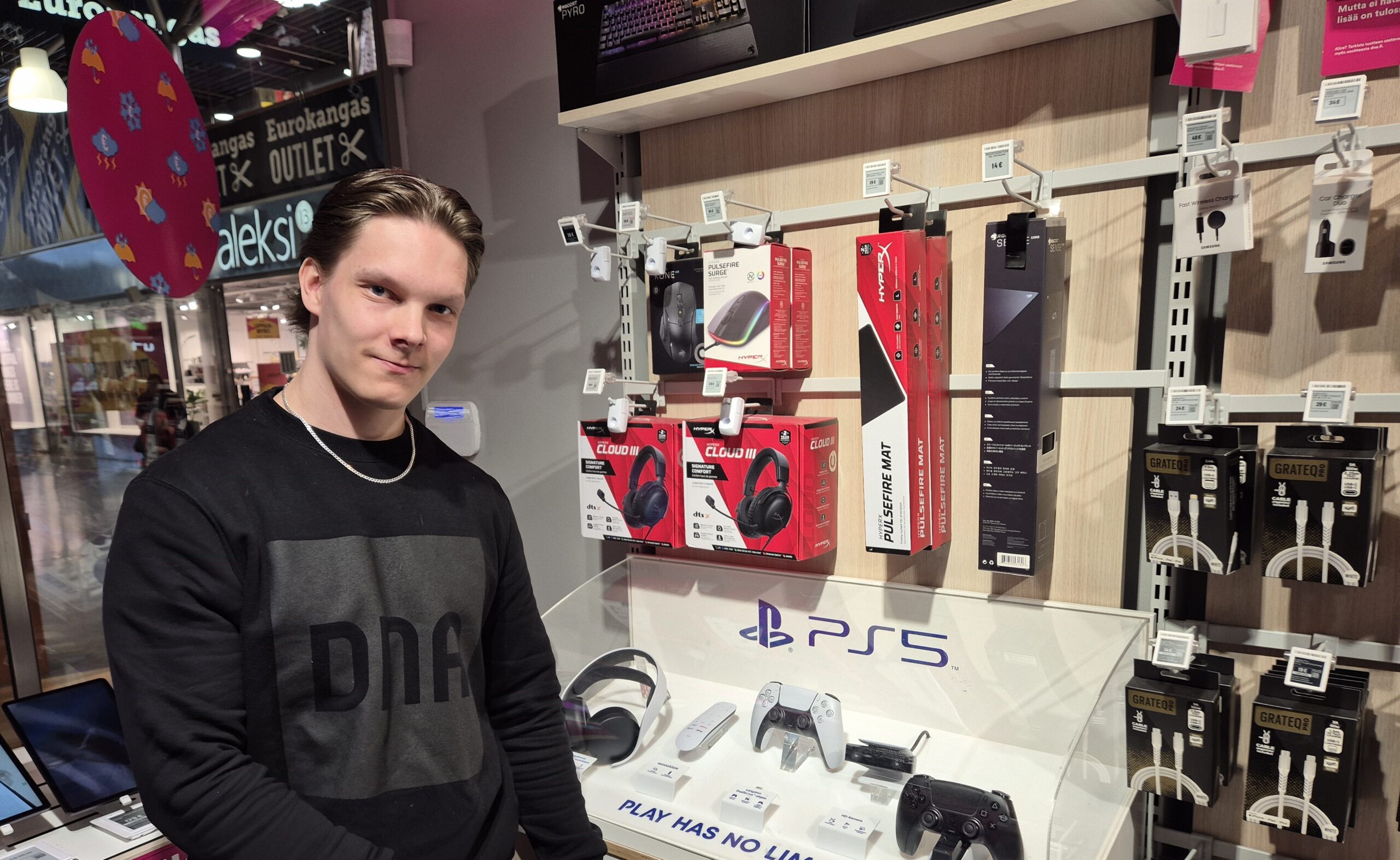 DNA Kaupassa joululahjojen suosikkeja ovat erityisesti puhelimet, joista löytyy vaihtoehtoja niin lapsille kuin aikuisillekin. Myyjä Tuukka Tikanniemi kertoo, että esimerkiksi lasten kellopuhelimet ovat olleet suosittuja edullisen hintansa ja käytännöllisyytensä vuoksi. Tabletteja hankitaan edelleen, erityisesti ison näytön ja hyvän akkukeston vuoksi, vaikka puhelimet dominoivatkin myyntiä.