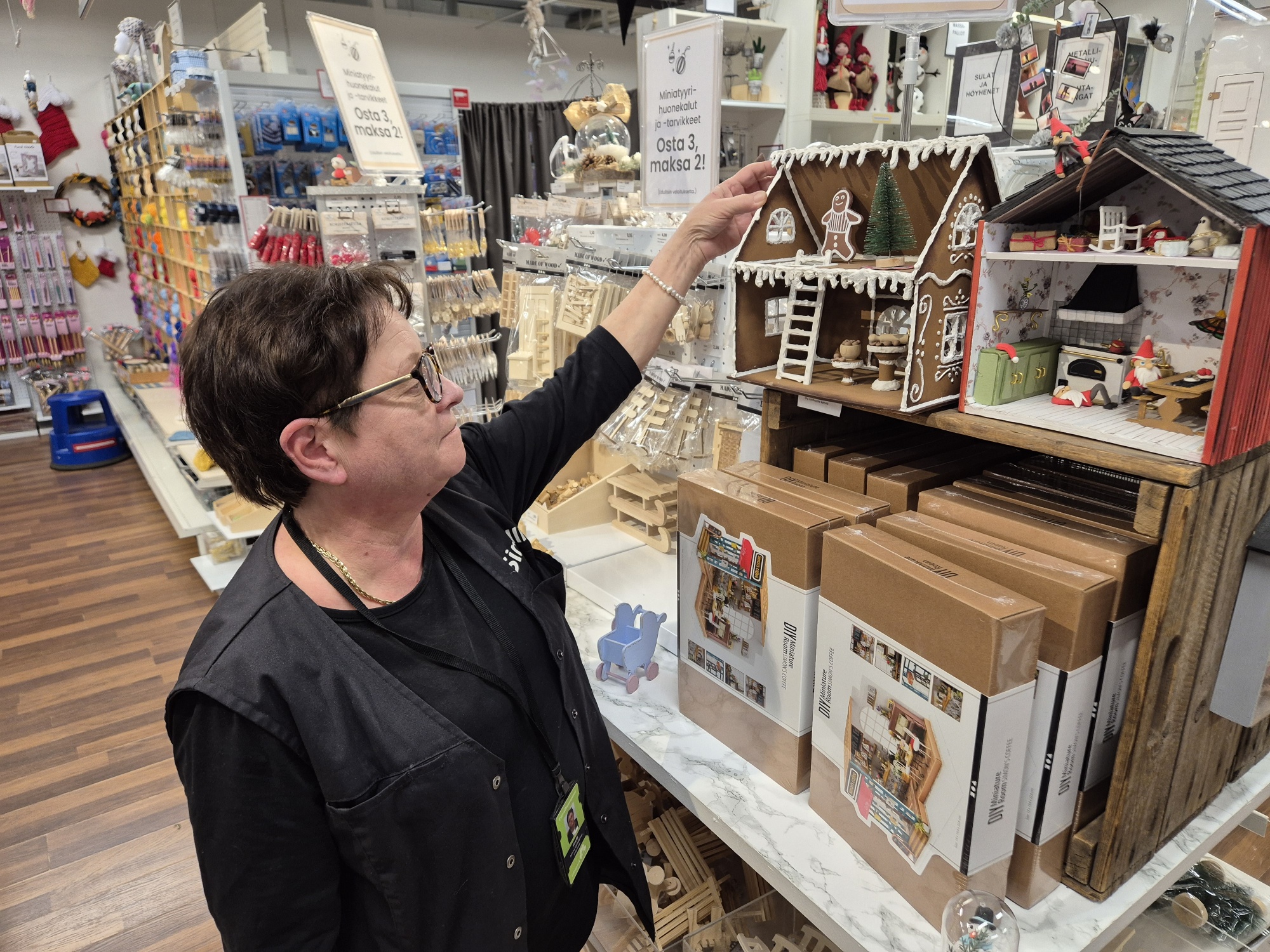 Itsetehdyt lahjat ja joulukoristeet ovat usein niitä arvostetuimpia tuotteita. Sinellistä löytyy tarvikkeet niin askarteluun kuin lahjapakettien viimeistelyyn kertoo myymäläpäällikkö Minna Kymäläinen.