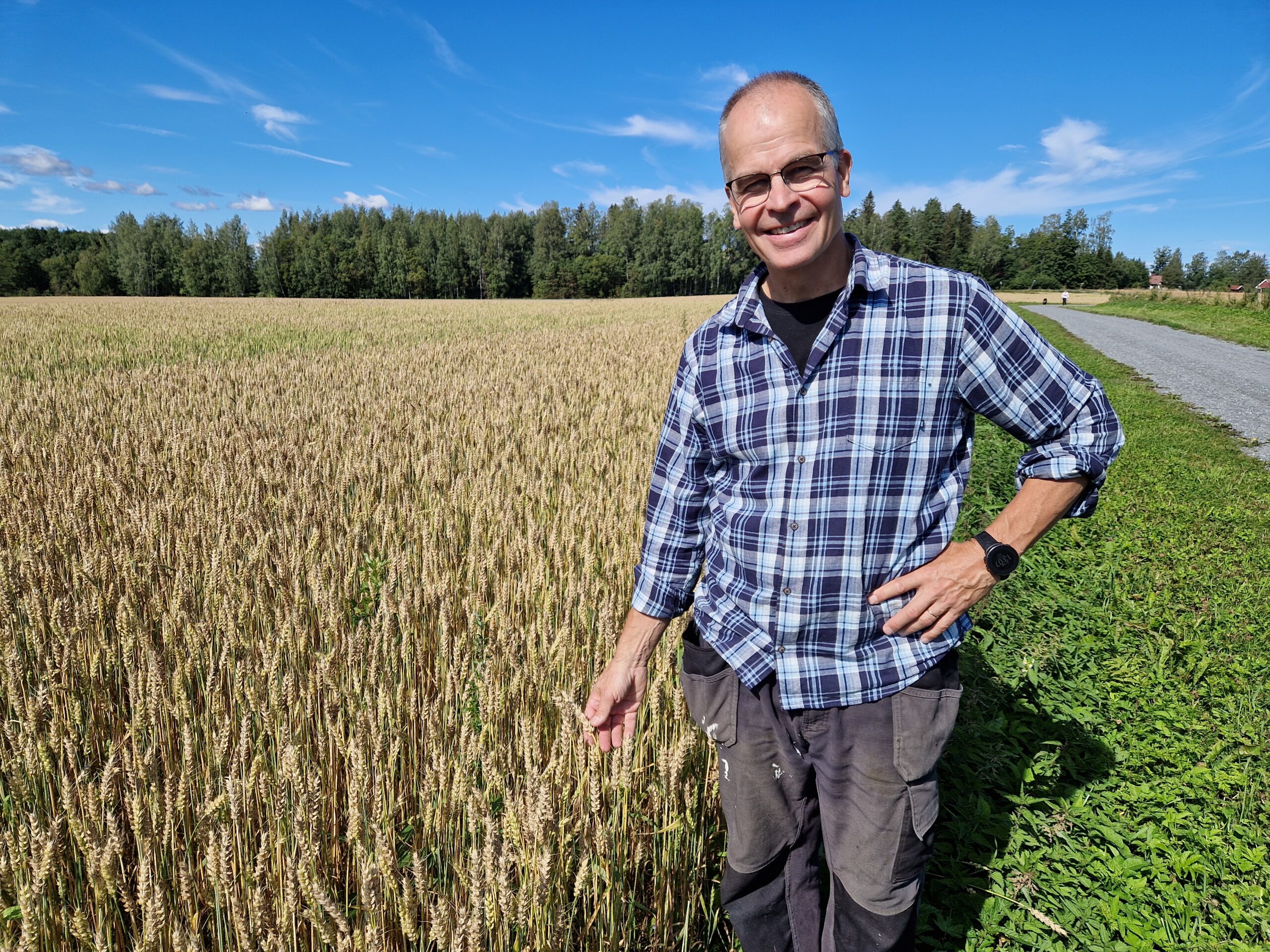 Osa-aikaviljelijä on tyytyväinen tämän kesän ohra- ja vehnäsatoon. Se on määrältään suuri ja toivottavasti myös laadultaan korkea.
